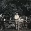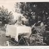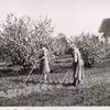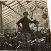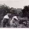 Metta Holm og Margrethe Holm bag laden i den gamle have. |