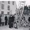 Byggerig med personer, muligvis på havnen i Gråsten |