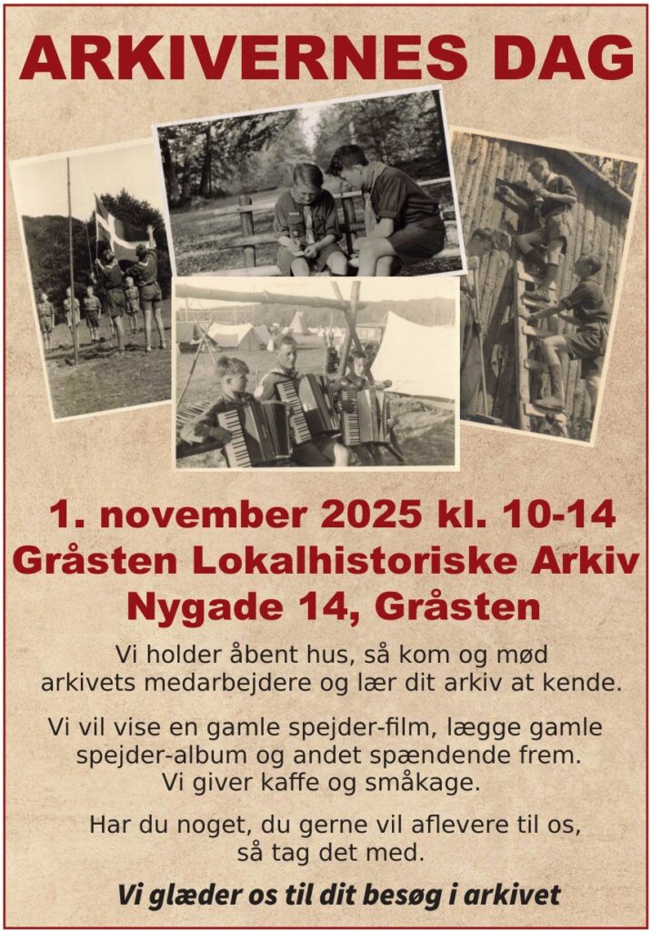 Kom og besøg os i arkivet lørdag den 1. november fra kl. 10 til 14. Temaet i år for det landsdækkende arrangement Arkivernes Dag er “Natur- og Friluftsliv”. Vi belyser det ved bl.a. at se nærmere på spejderne i vores område.